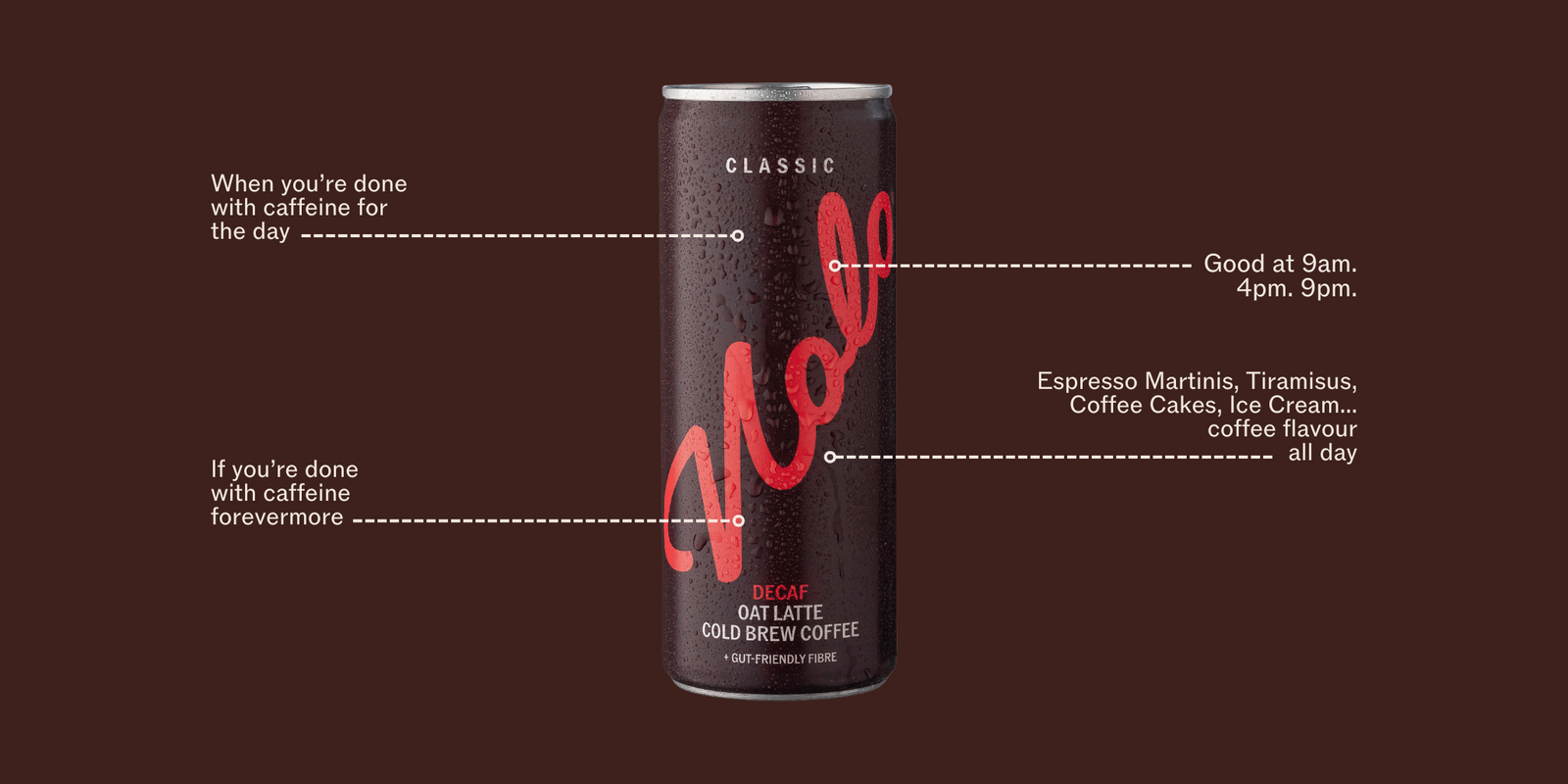Nolo is the first Decaf ready to drink coffee. Also the first with prebiotic plant fibre. But most important Nolo is a decaf that actually tastes great. It's a gamechanger for enjoying coffee whenever you feel like without worrying about the caffeine slide.